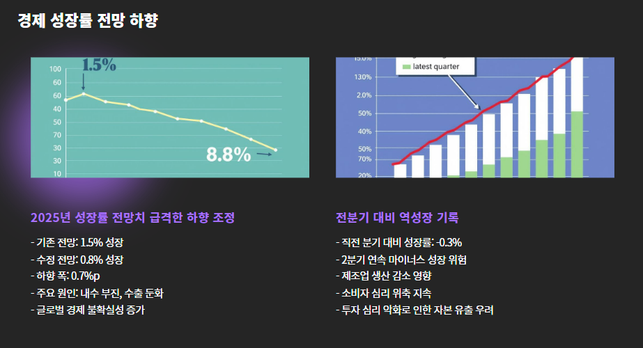- ✅ 경제성장률 전망치 하향: 1.5% → 0.8%