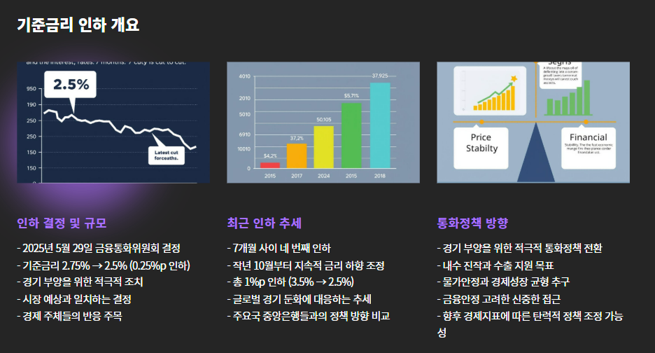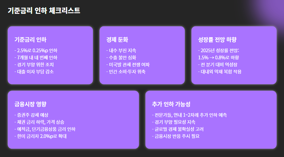 - ✅ 기준금리: 2.5% (0.25%p 인하)