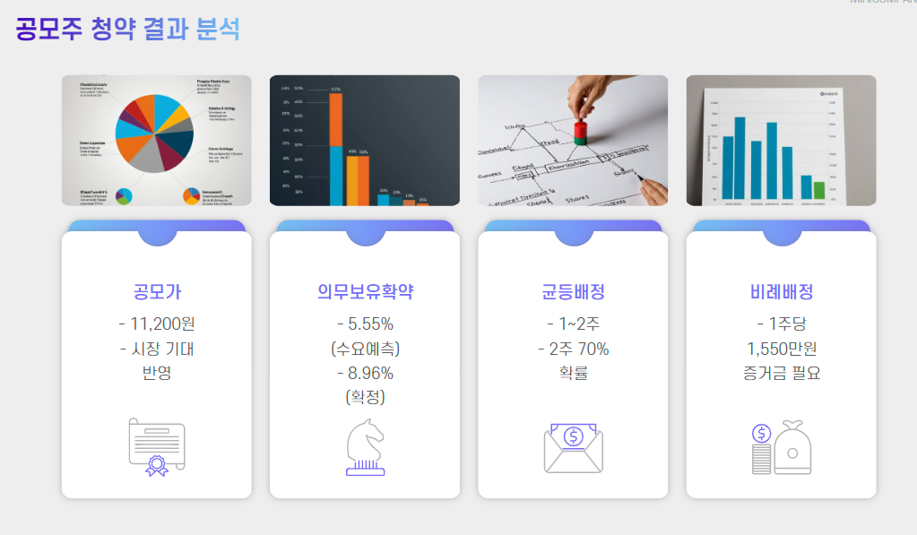- 수요예측 결과: 의무보유확약 비중이 낮아 아쉬움도 있었죠.