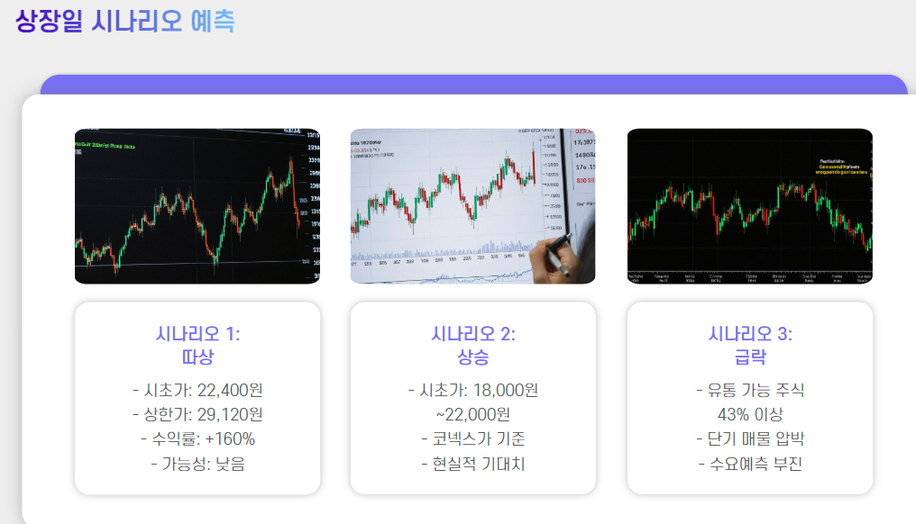 - 유통 가능 주식이 43% 이상이라, 상장 당일 단기 매물 압박 가능성도 큽니다.