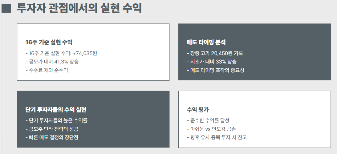 - 상장 첫날 급등 이후 조정 가능성 존재