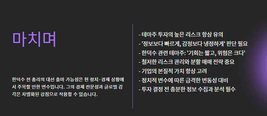 한덕수 관련 테마주는 "기회는 짧고, 위험은 크다"는 점을 잊지 마세요.