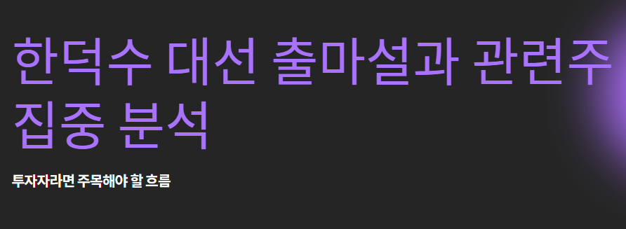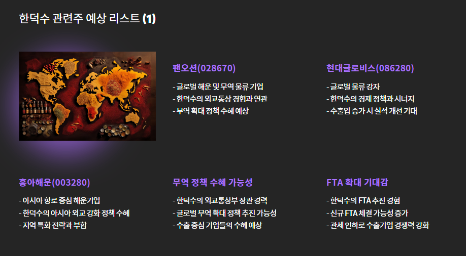 이런 상황에서 주식시장에서는 벌써부터 **"한덕수 관련주"**를 찾는 움직임이 포착되고 있습니다.