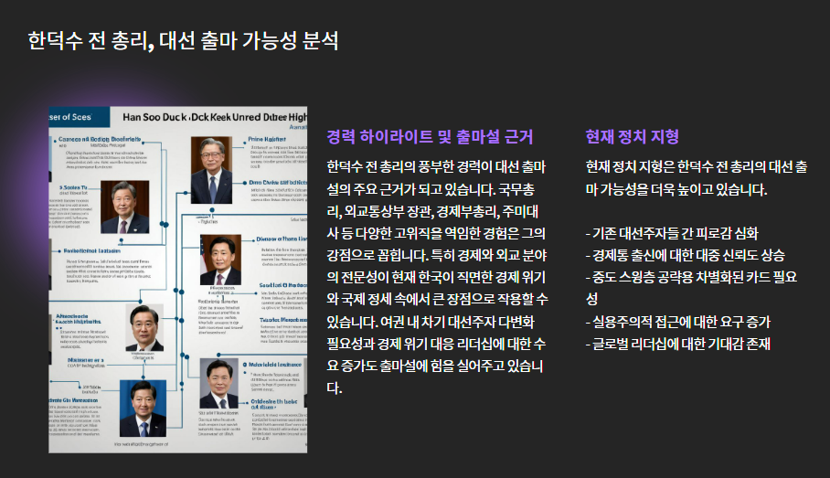 1. 한덕수 전 총리, 대선 출마 가능성 분석
