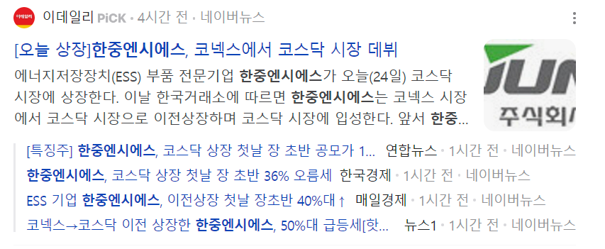 한중엔시에스는 자동차 부품과 에너지 저장 장치 부품을 전문으로 하는 기업으로, 국내 유일하게 수냉식 ESS 냉각 시스템을 상용화하여 삼성SDI에 납품하고 있어요. 아직 매출은 적자이지만 꾸준히 상승하고 있으며, 코넥스에서 코스닥으로 이전 상장합니다.