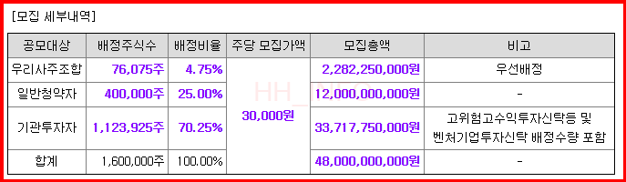 - 총 공모 주식 수: 1,600,000주 (개인 투자자 물량 400,000주)