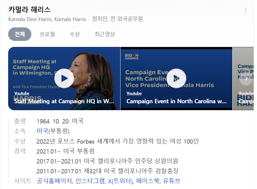 해리스는 과거 '여자 오바마'라는 별명으로 민주당에 입성하여, 바이든 대통령 후보 지명 당시 부통령 후보로서 런닝메이트를 맡았습니다.