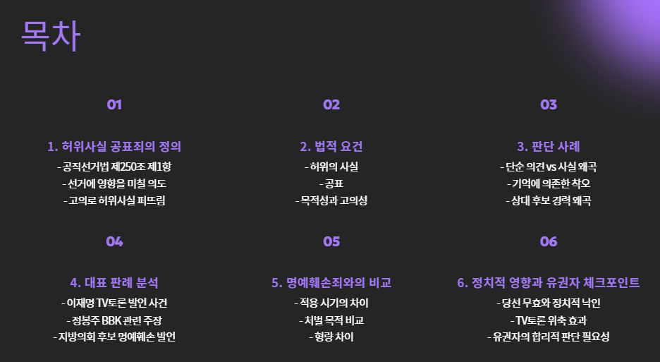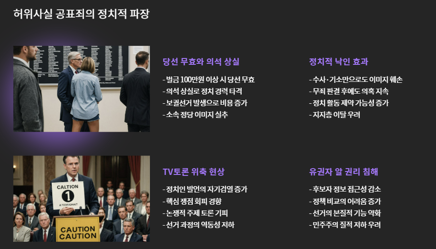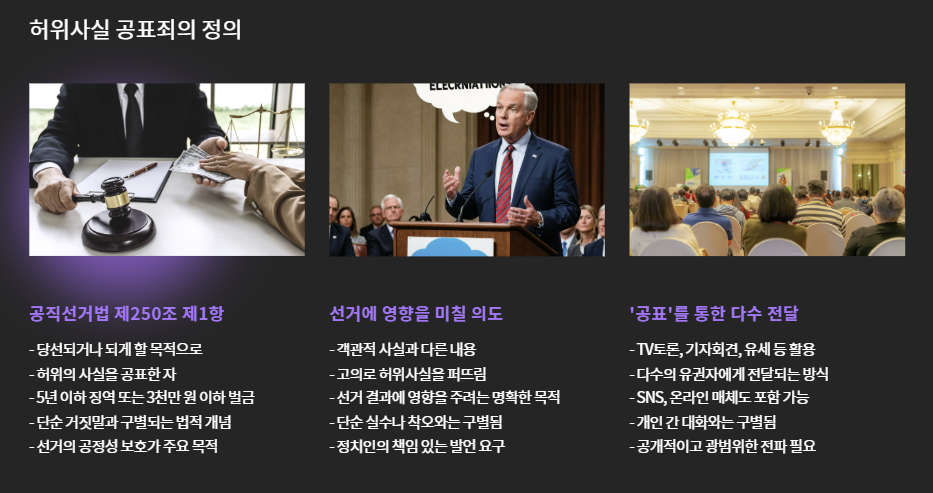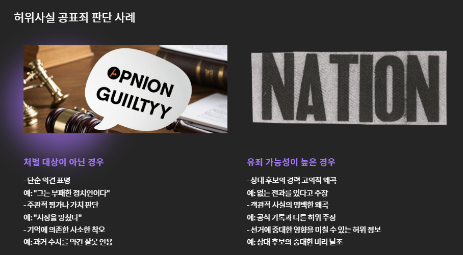 - 이유: 객관적 사실을 명백히 왜곡했으며, 선거에 영향을 줄 의도 인정됨