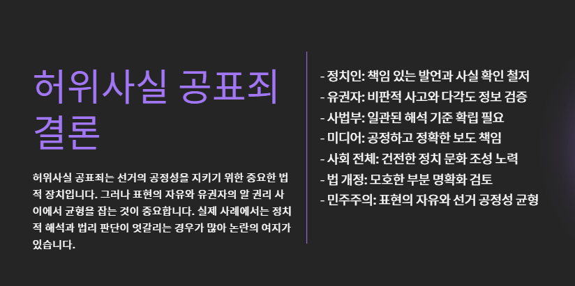 결국 중요한 건 정치인들의 책임 있는 발언과 유권자의 합리적 판단이며, 사법부의 일관된 해석 기준이 함께 뒷받침되어야 할 것입니다.