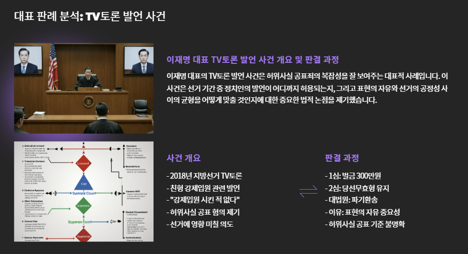 허위사실 공표죄는 선거의 공정성을 지키기 위한 중요한 법적 장치입니다. 하지만 정치인의 표현과 유권자의 알 권리 사이에서 어디까지를 처벌하고 어디까지를 용인할 것인지는 여전히 뜨거운 논쟁 대상입니다.