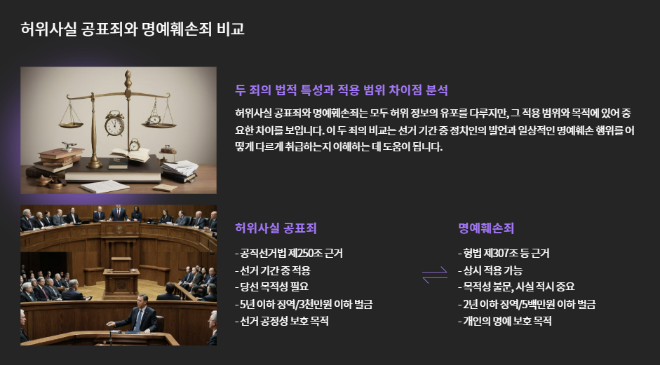 | 처벌 목적 | 선거 공정성 보호 | 개인 명예 보호 |