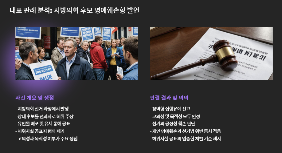 - 상대 후보가 전과자라는 허위 주장 → 징역형 집행유예