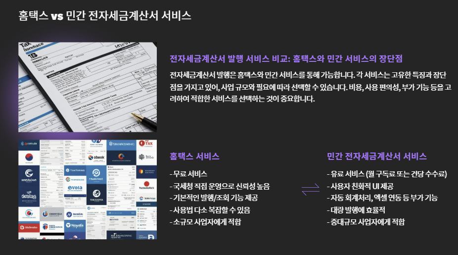 홈택스 전자세금계산서 vs 민간 서비스 비교