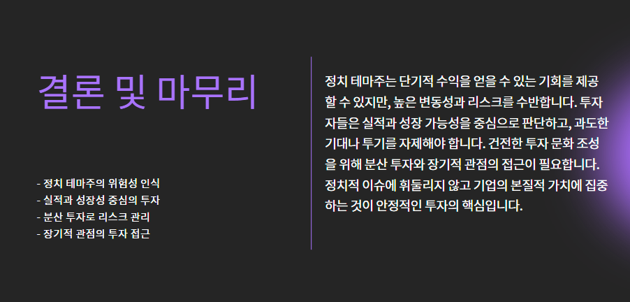 ⚠️ 정치 테마주 투자 시 유의사항
