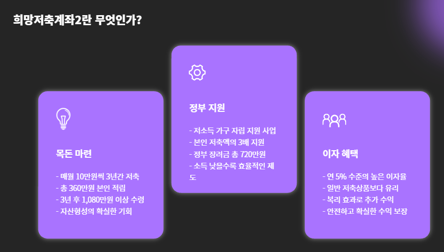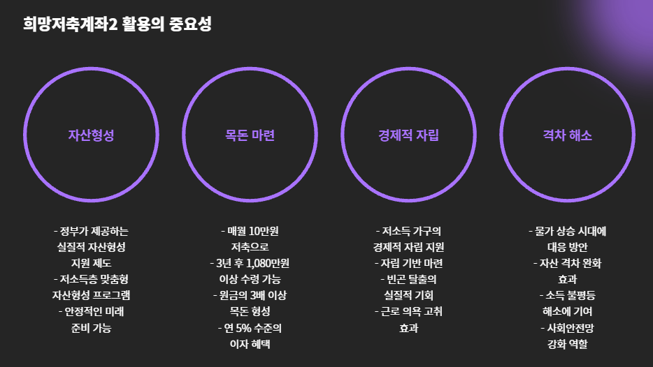 요즘처럼 물가가 오르고 자산 격차가 커지는 시대에, **희망저축계좌2는 정부가 제공하는 몇 안 되는 ‘실질 자산 형성 제도’**입니다.