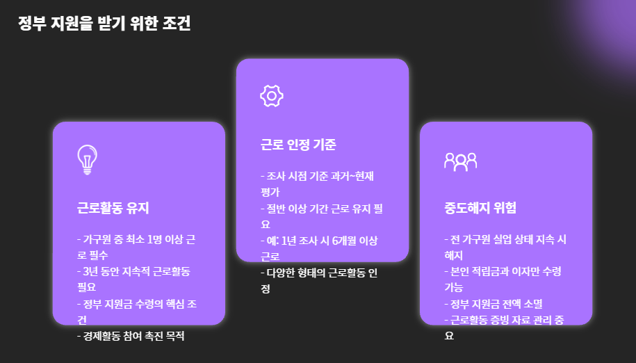가장 중요한 조건은 바로 ‘근로활동’ 유지입니다.