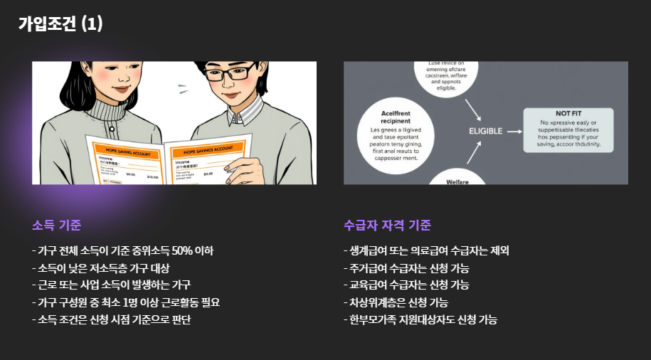 특히 저소득 가구일수록 미래를 위한 자산 마련이 쉽지 않은 만큼, 이 제도를 제대로 활용하는 것이 경제적 자립의 지름길이 될 수 있습니다.