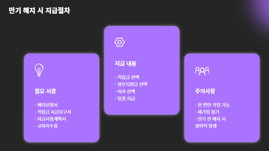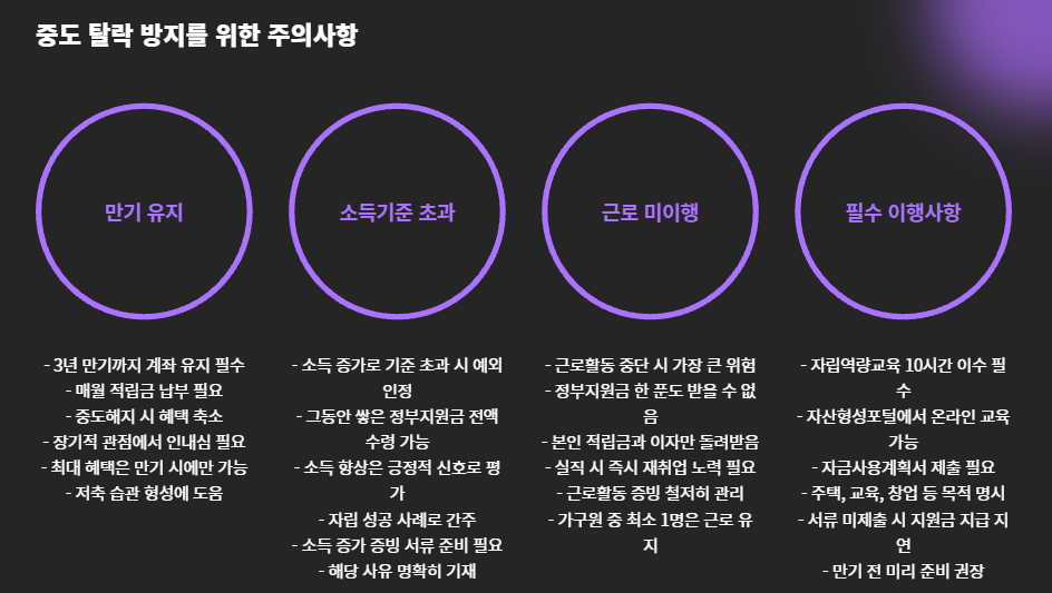 다만, 중도에 소득기준을 초과해 탈락되는 경우에는 예외적으로 그동안 쌓은 정부지원금 전액을 수령 가능합니다.