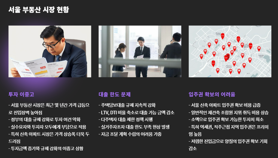 가격 급등과 대출 규제 강화라는 **‘투자 이중고’**에 직면했습니다.