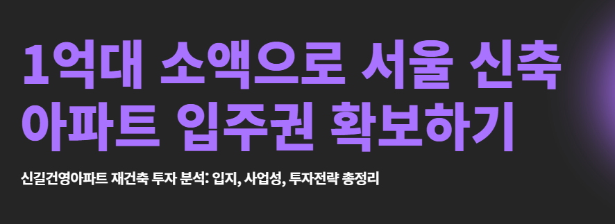 1억대 소액 투자로도 서울 신축 입주권 확보가 가능한 흔치 않은 기회입니다.