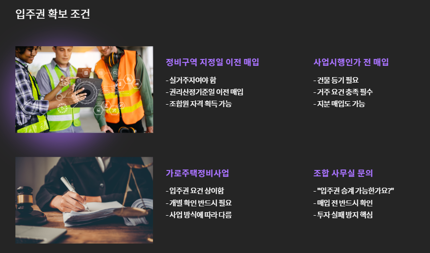 - 가로주택정비사업 등은 입주권 요건 다름 → 반드시 개별 확인 필요