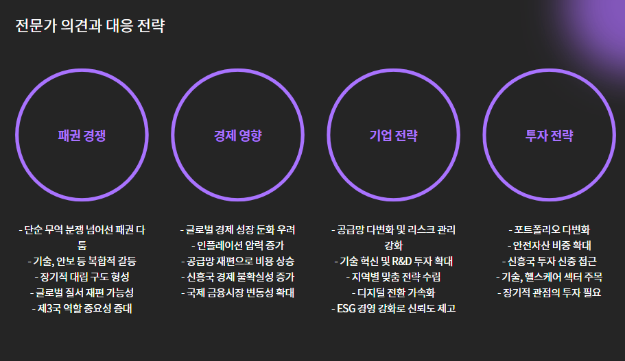 “이번 관세 부과는 단순한 무역 문제가 아니라 패권 경쟁의 연장선입니다. 트럼프 대통령의 전략은 중국 경제를 길들이는 데 있지만, 중국 역시 글로벌 경제의 한 축이기 때문에 파장은 클 수밖에 없습니다.”