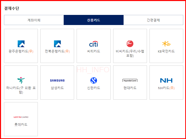 단, 현재 이벤트를 하고 있는 카드사는 별로 없네요.