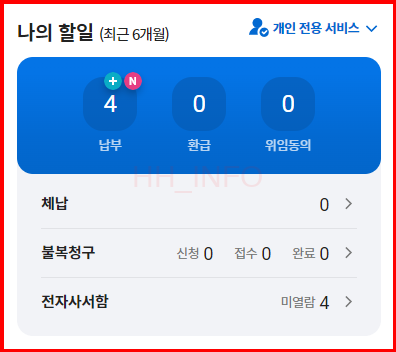 내가 내야 하는 납부 대상 목록이 나오게 됩니다.