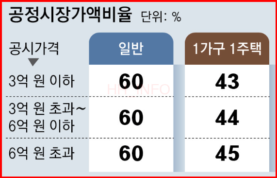✅ 주택의 경우 공정시장가액비율은 60% 입니다. 1주택자인 경우 공시가격에 따라 43% ~ 45% 가 적용됩니다. (특례 적용)