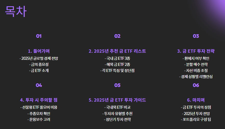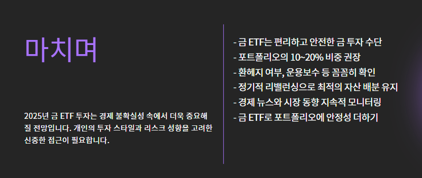 성공적인 금 ETF 투자 전략을 깔끔하게 정리해드리겠습니다.