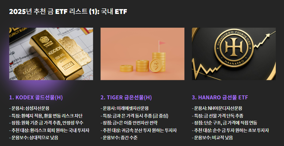 오늘은 2025년에 주목해야 할 금 ETF 추천 리스트와,