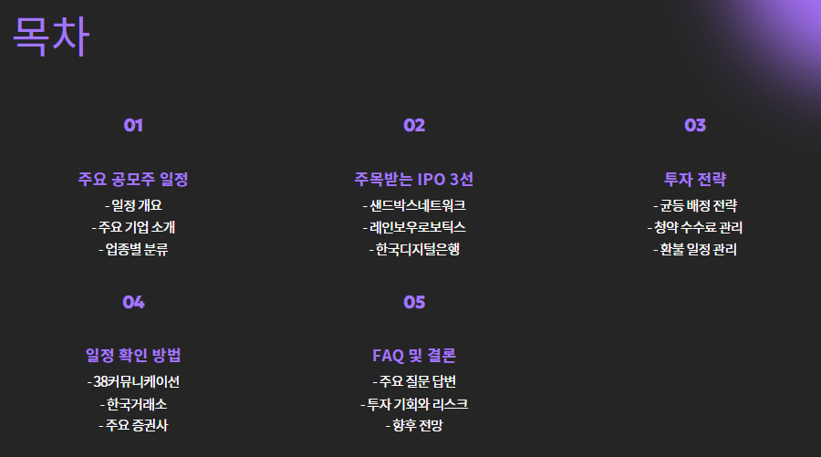 💡 일정은 증권사/거래소 발표에 따라 변경될 수 있습니다. 청약 전 반드시 공식 공시를 확인하세요.