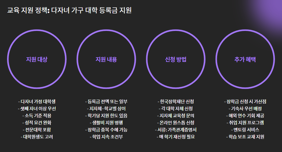 - 특징: 셋째 자녀 이상 우선 지원, 장학금 신청 시 가산점 제공