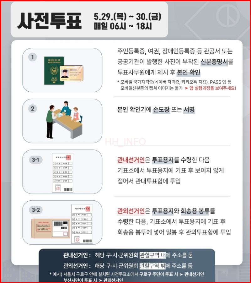 - 투표장소: 지정된 내 투표소 (※ 꼭 선관위 홈페이지에서 사전 확인!)