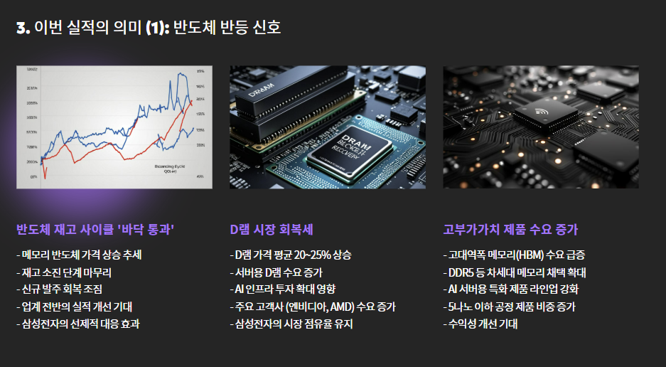 그리고 재고 정리 이후 본격화된 메모리 반도체 가격 회복이 핵심 변수로 작용했죠.