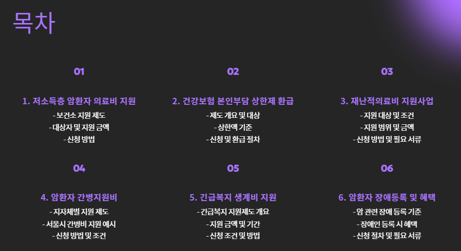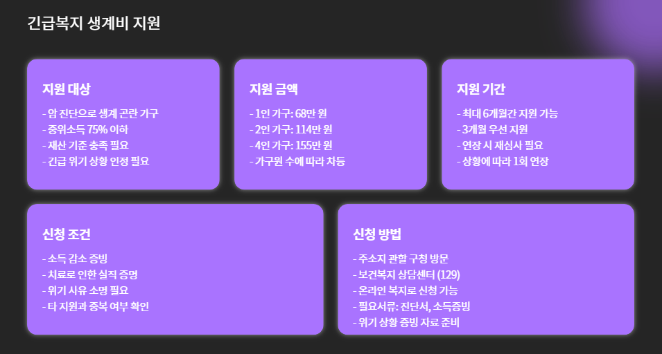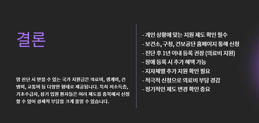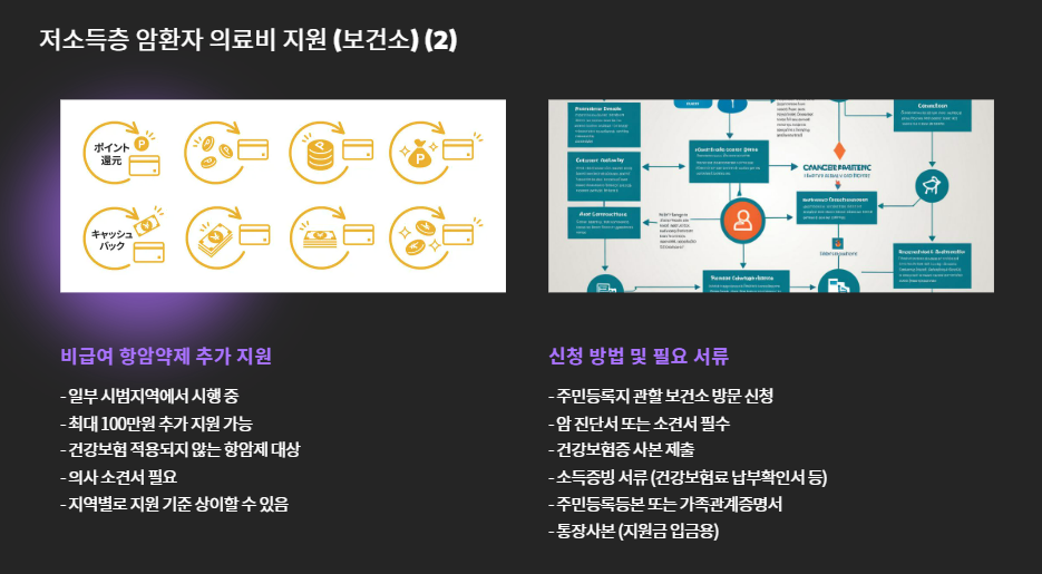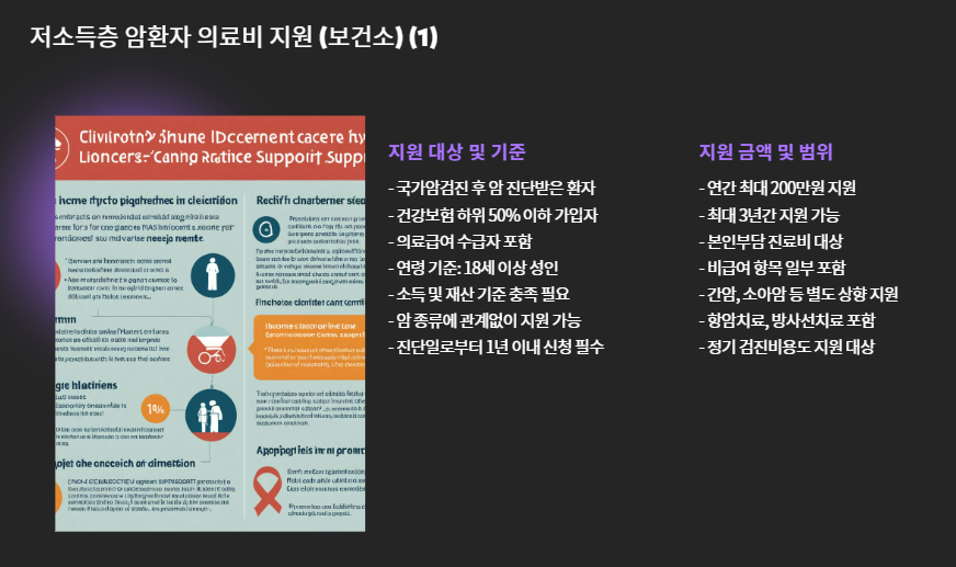 - 대상: 기초생활수급자 또는 차상위계층 암환자