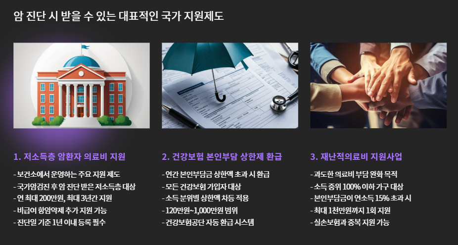 1. 암 진단 시 받을 수 있는 대표적인 국가 지원제도는?