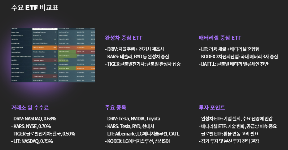 2025년 완성차·배터리셀 중심 ETF 비교 – 전기차 산업 ETF 한눈에 정리