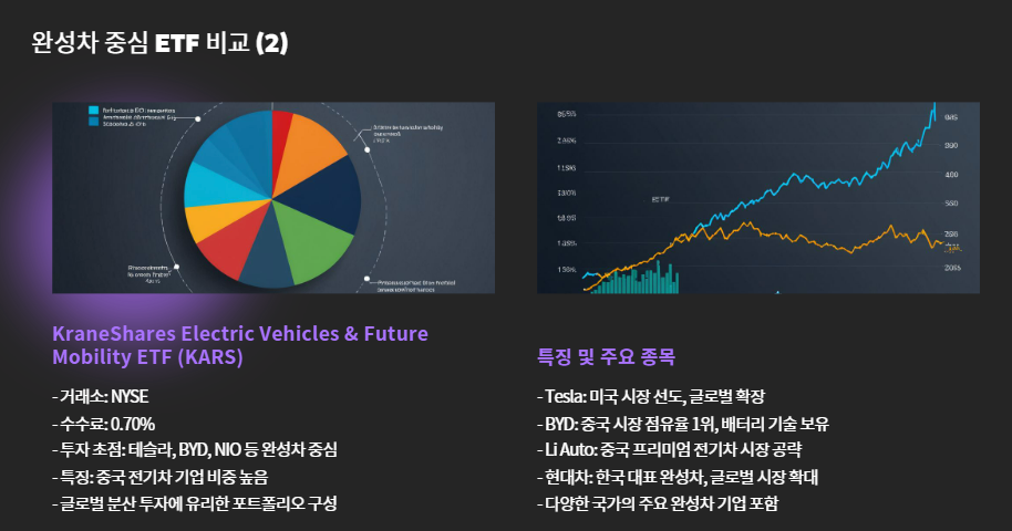 | 완성차에 집중 | KARS 또는 TIGER 글로벌전기차 | 테슬라·BYD·현대차 비중 높음 |