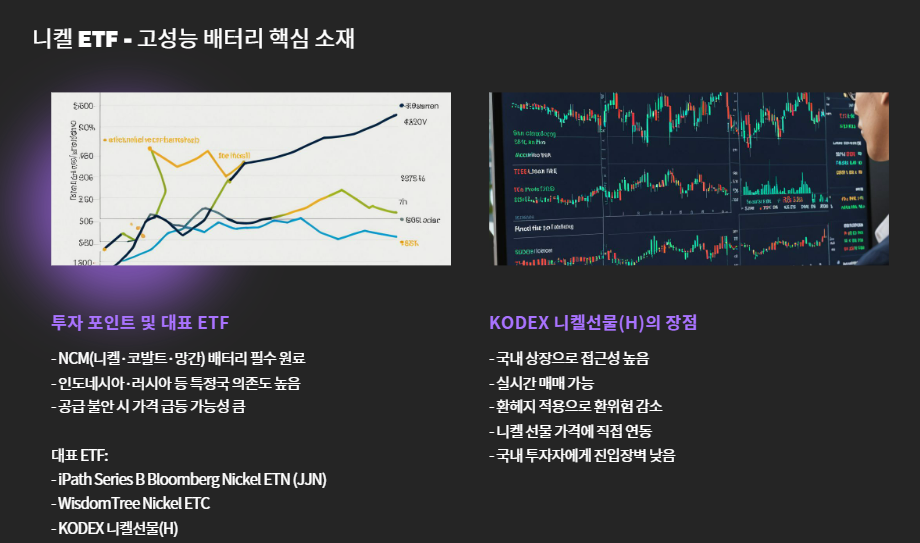 💡 국내 투자자에겐 **KODEX 니켈선물(H)**이 진입장벽 낮고