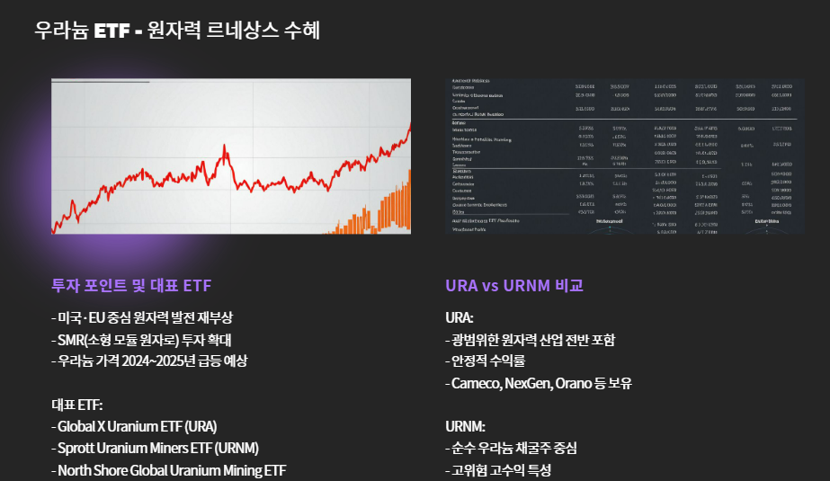 - 우라늄 가격 2024~2025년 급등 → 관련 ETF 수익률 동반 상승