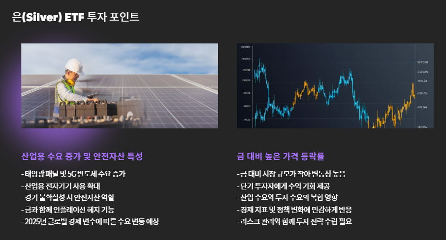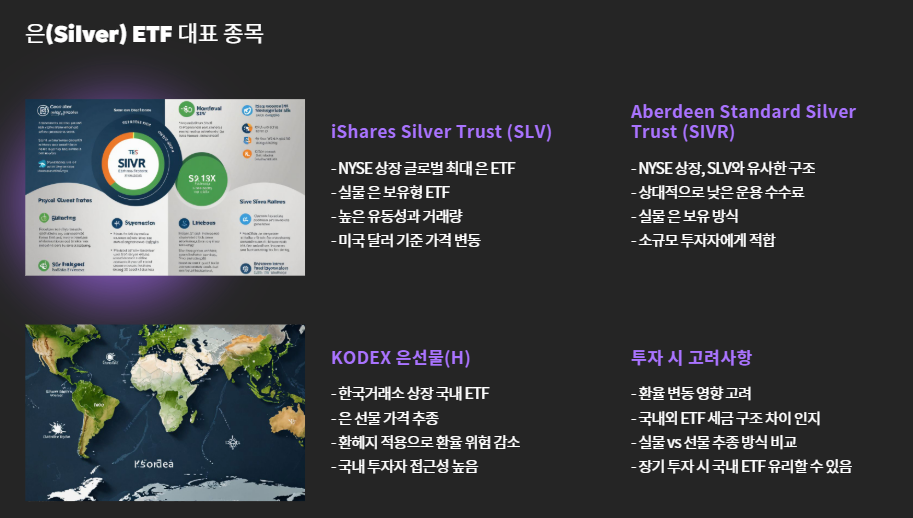 2. 은(Silver) ETF – 산업 수요 + 안전자산 성격