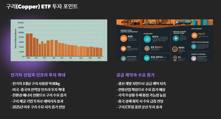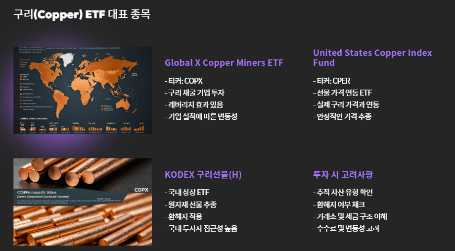 3. 구리(Copper) ETF – 전기차와 인프라 수혜