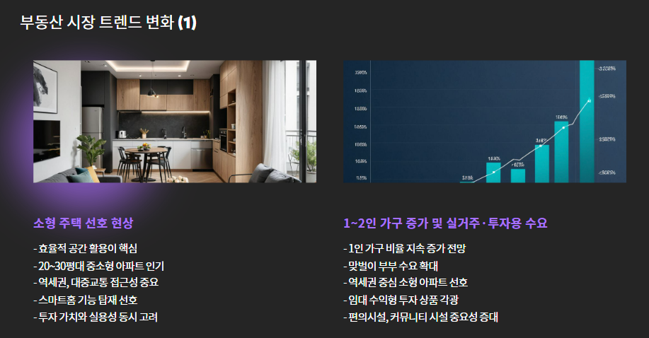 - 1~2인 가구 증가에 대응하는 소형 아파트 비중 확대