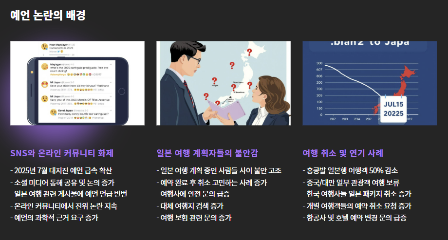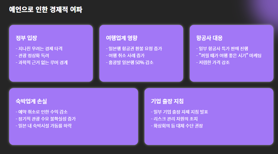 이번 예언이 퍼지면서 실제로 일본행 항공권 환불 요청이나 여행 취소 사례도 증가하고 있습니다.