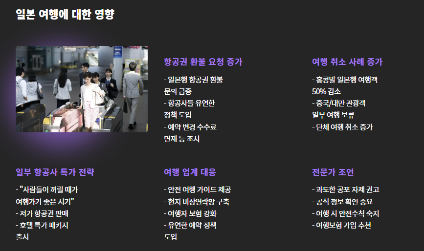 - 홍콩발 일본행 여행객 수: 전년 대비 약 50% 감소