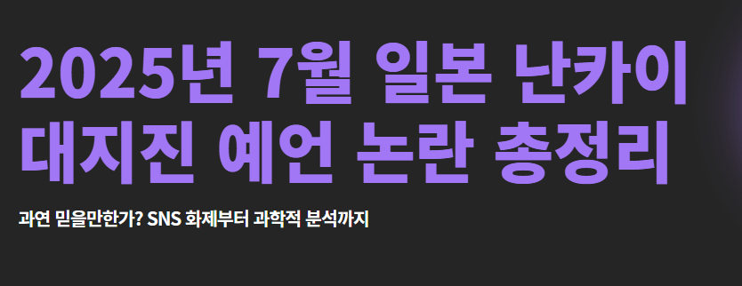 요즘 SNS와 온라인 커뮤니티에서 **'2025년 7월 일본 난카이 대지진 예언'**이 다시금 화제를 모으고 있습니다.