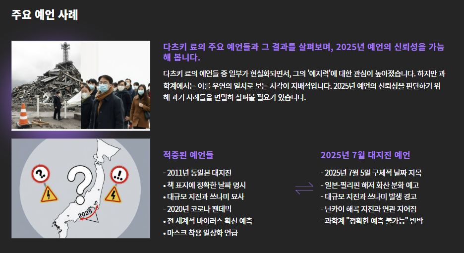 | 예언 내용 | 2025년 7월 5일 일본-필리핀 해역 대지진 |