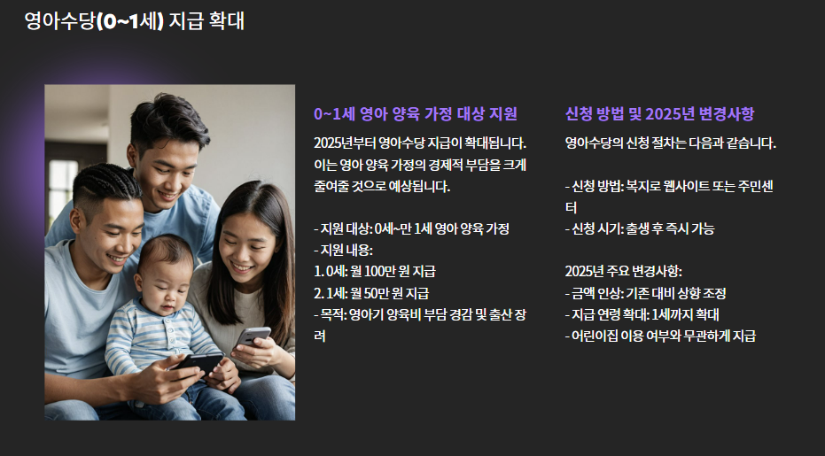 | 영아수당 | 0세 100만 원, 1세 50만 원 매월 지급 | 복지로 |