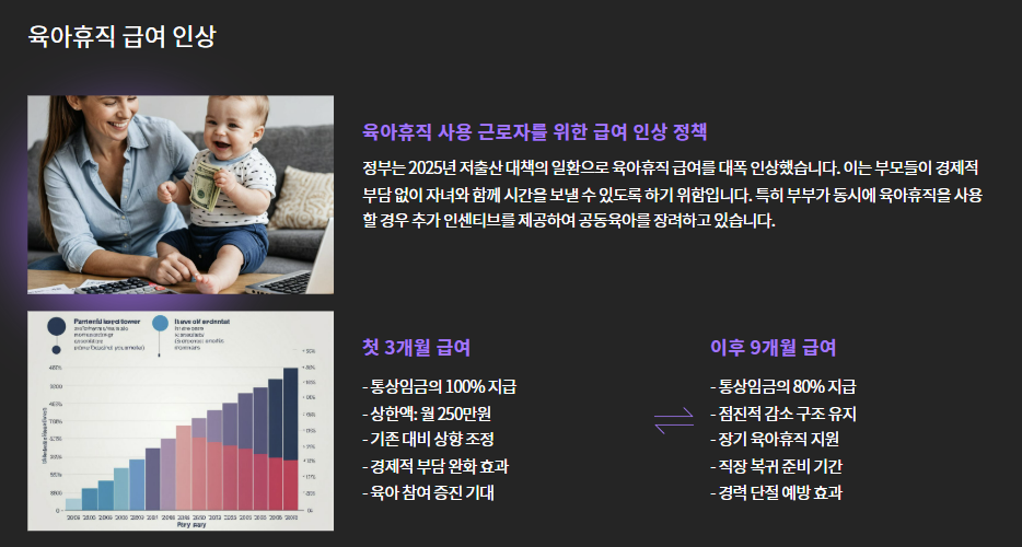 - 특징: 부부 동시 육아휴직 사용 시 추가 인센티브 지급